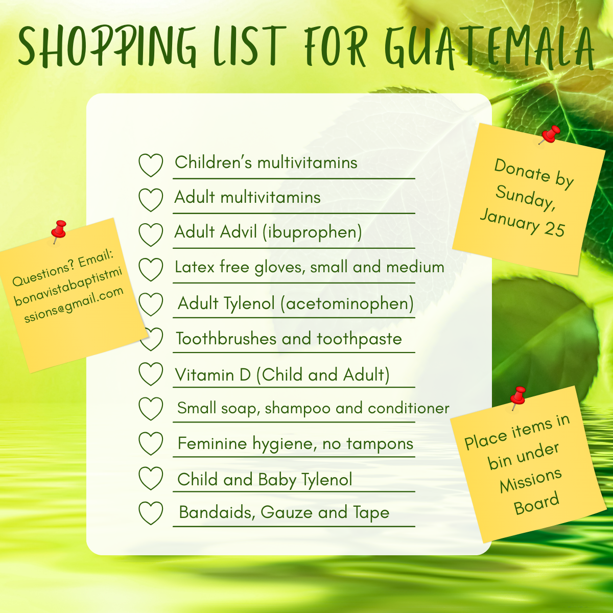 GUATEMALA MISSON SHOPPING LIST: