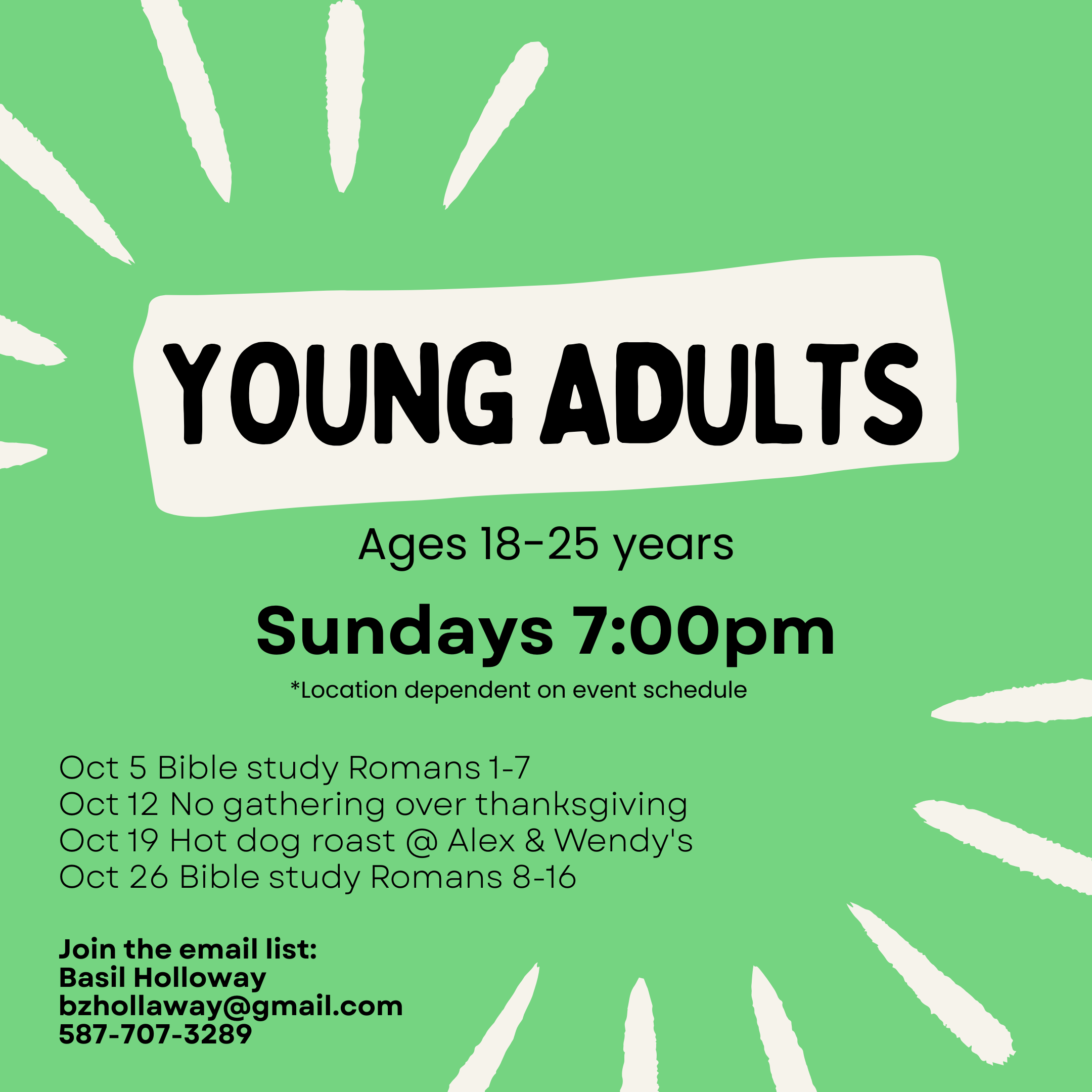Our Young Adults gather together every Sunday at Bonavista Baptist from 7-9 PM.